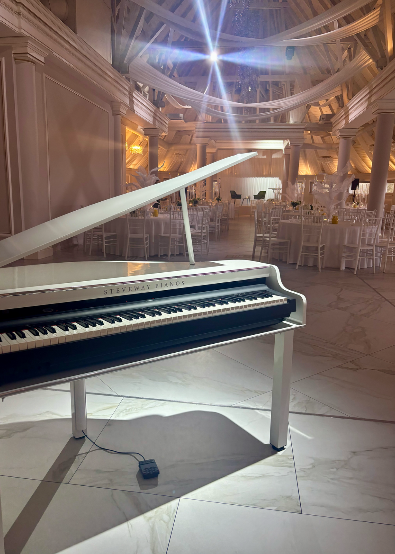 Živá hudba na luxusním bílém křídle vytváří jedinečnou atmosféru a podtrhuje výjimečnost každé události.